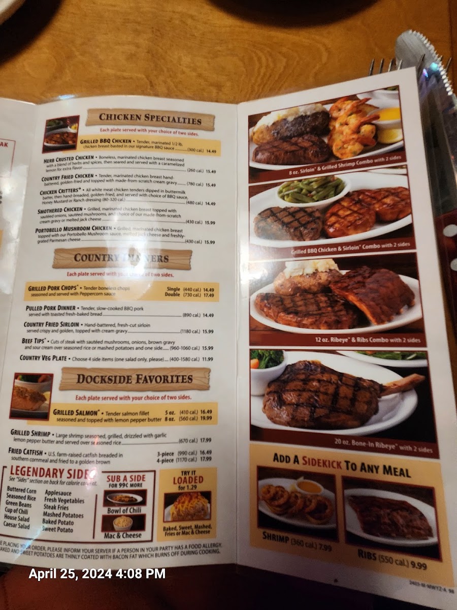 You’ll find a range of robust options, including slow-cooked ribs glazed in signature BBQ sauce, or perfectly grilled steaks served alongside traditional sides like baked potatoes, steamed vegetables, and fresh salads. Meals begin with their signature fresh-baked bread, setting a down-to-earth tone that matches the inviting, western-inspired atmosphere.